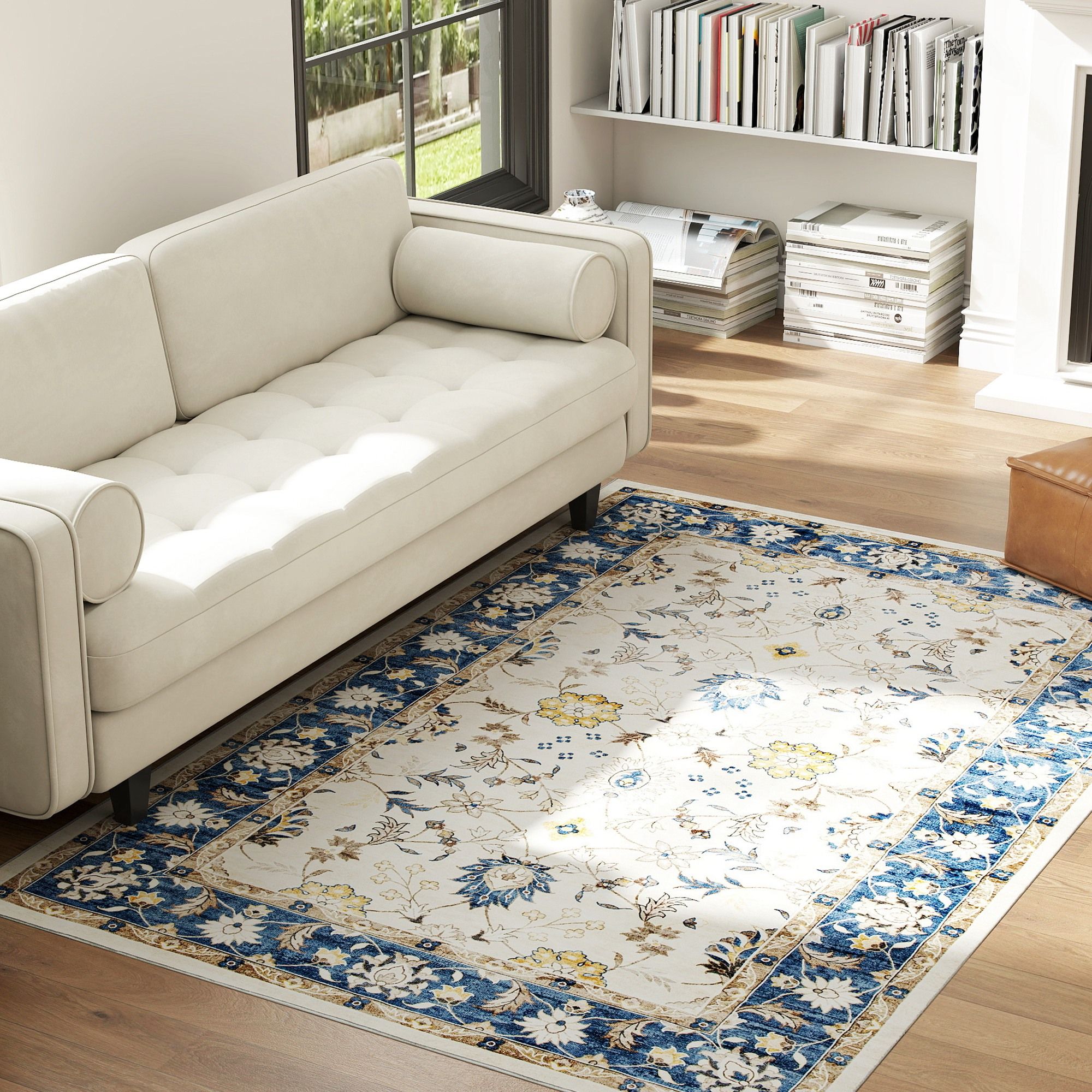 Highlights:1.- Elegant Design: Warm your space with this area rug, where floral motifs and trailing vines in bohemian style create a relaxed, inviting feel in your living room, bedroom, or hallway. It invites you to slow down, sink in, and truly feel at home