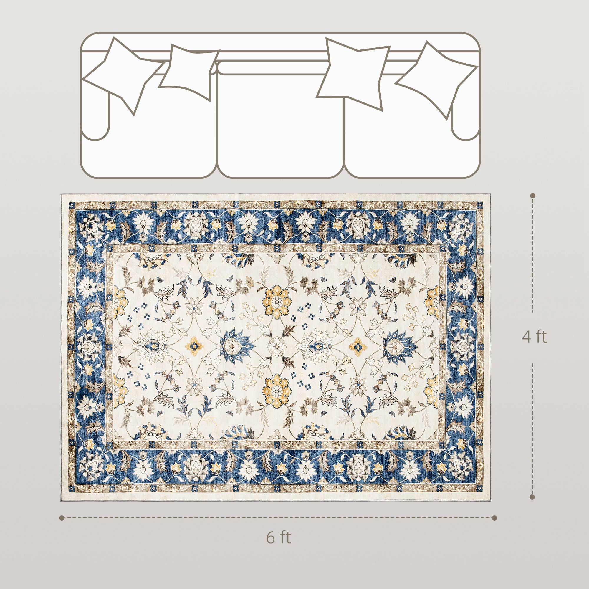 Step into style and comfort with the HOMCOM area rug, featuring bohemian-inspired floral and vine patterns that enhance any space, from living rooms to studies. Crafted from soft, plush flannel, this bedroom rug offers easy cleaning options. Plus, a 100% TPR anti-slip backing ensures your setup is chic and safe. Suitable for any room needing a touch of elegance!